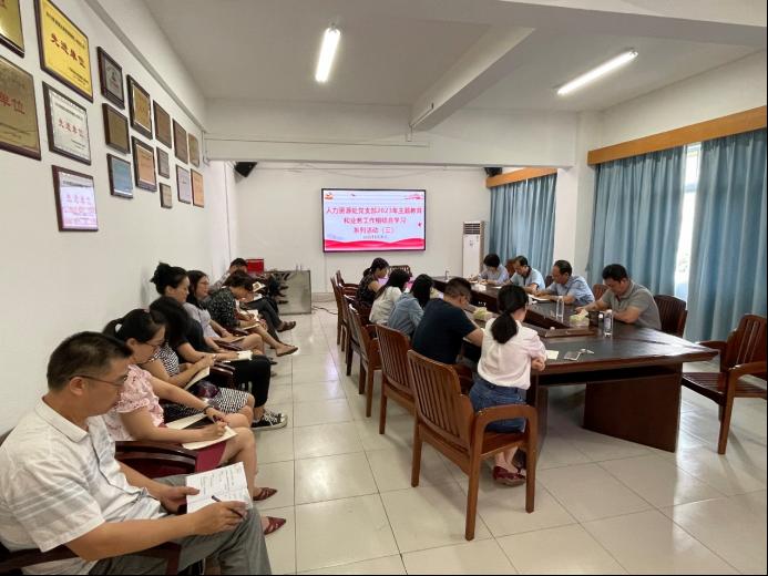 2023年5月30日人力资源处党支部开展关于主题教育和业务工作相结合学习系列活动(三),由支部蔡凌波同志、韦金萍同志分享读书感悟,吴彤同志领学。