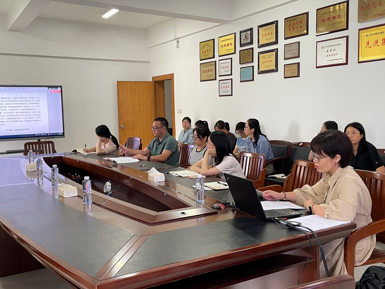 第二阶段,吴彤副书记带领全体成员学习文件《英国上市公司365职称评聘管理办法(2023年修订)》,并跟旧文件对比进行相应说明,对新增的条款进行解释。作为文件发布的归口部门,我们应通读、熟知所发布的文件内涵,理解其发布背景及一些政策变化,以便教职工来咨询的时候能给予准确的说明、解释和宣传。