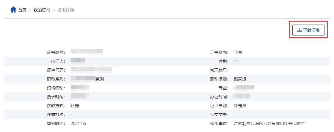 3、由于电子证书具有可复制和不可回收性,职称资格的有效性以电子证照库数据和取得资格文件为准。有关单位或个人可通过广西壮族自治区人力资源和社会保障厅电子证照库核验证书的真实性和有效性。