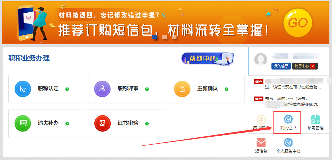 第一步 点击首页右侧“我的证书”,进入到证书信息查看页面;